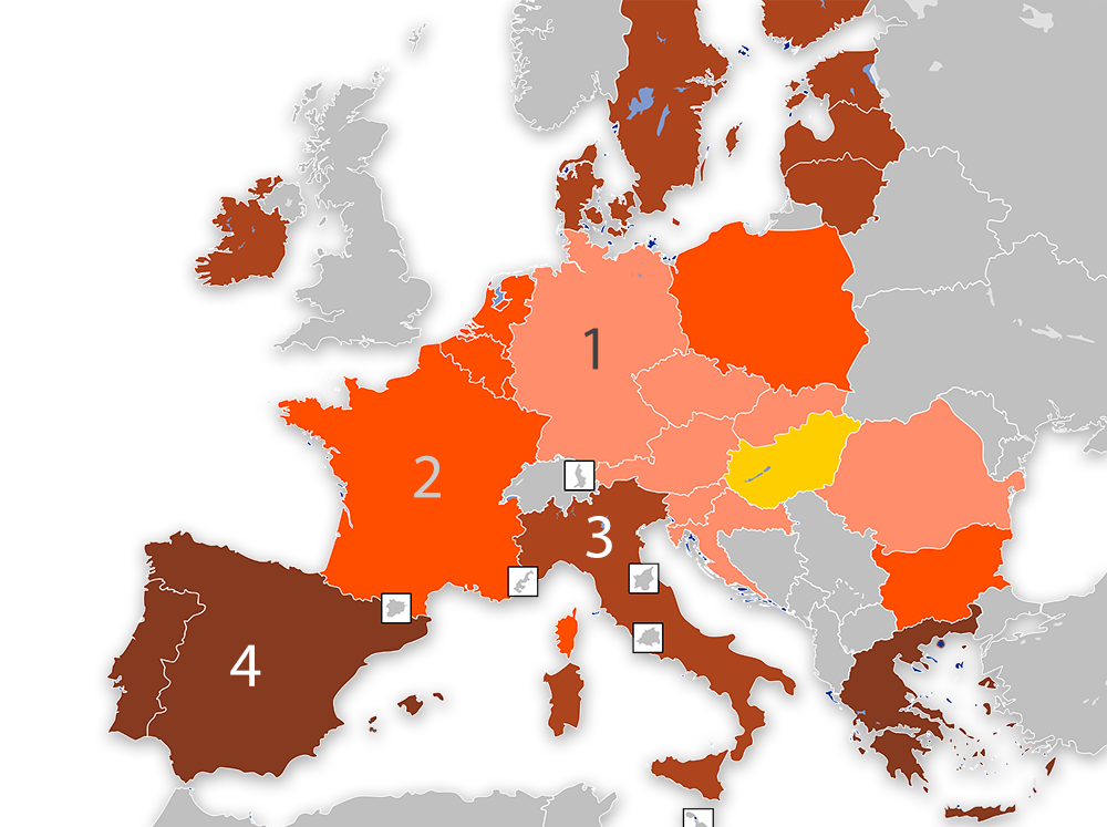 Zone 2Poland, (2), Belgium, Netherlands, Luxembourg, Bulgaria (3) France (3-5) |