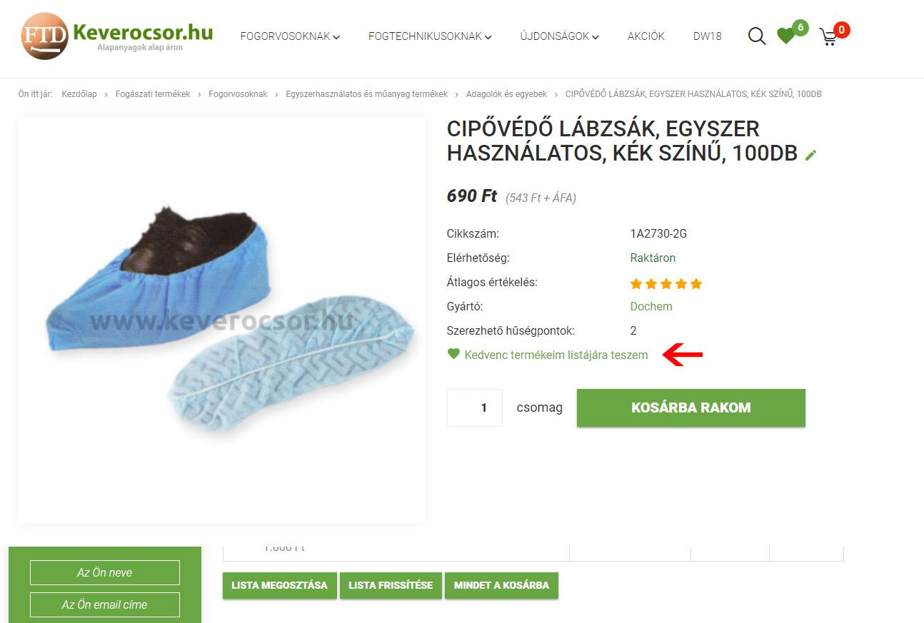 Ahhoz, hogy a gomb megjelenjen, be kell jelentkeznie webáruházunkba és fel kell vennie legalább egy kedvenc terméket ezt a termékoldalon a kosába gomb felett található zöld szívecskével teheti meg.